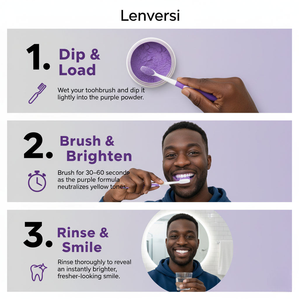 “I was shocked at how fast Lenversi’s purple powder worked. My teeth looked brighter after the very first brush, and the yellow tint I always struggled with literally disappeared. After a week of using it daily, my smile looks cleaner and way more even-toned. I’ve never felt more confident in photos.”